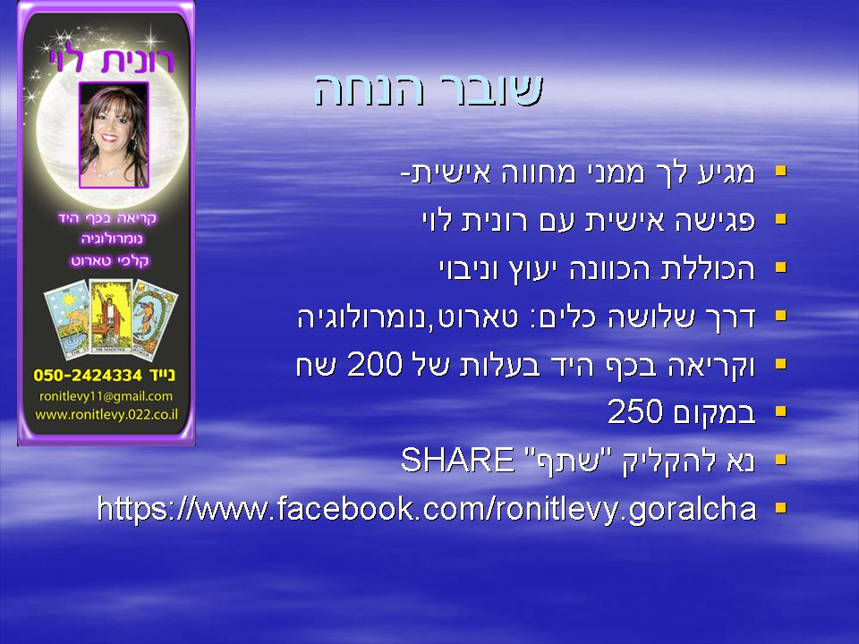 רונית לוי גורלך בכף ידך-050-2424334 ronitlevy11@gmail.com